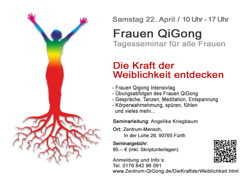 Lasst uns zusammen einen schönen Tag verbringen mit viel Lachen, Entspannung, Gesprächen, Tanzen und narürlich Frauen QiGong zum Entdecken unserer weiblichen Ressourcen.